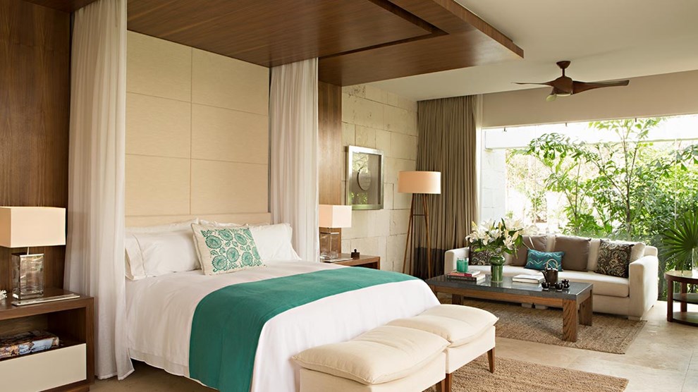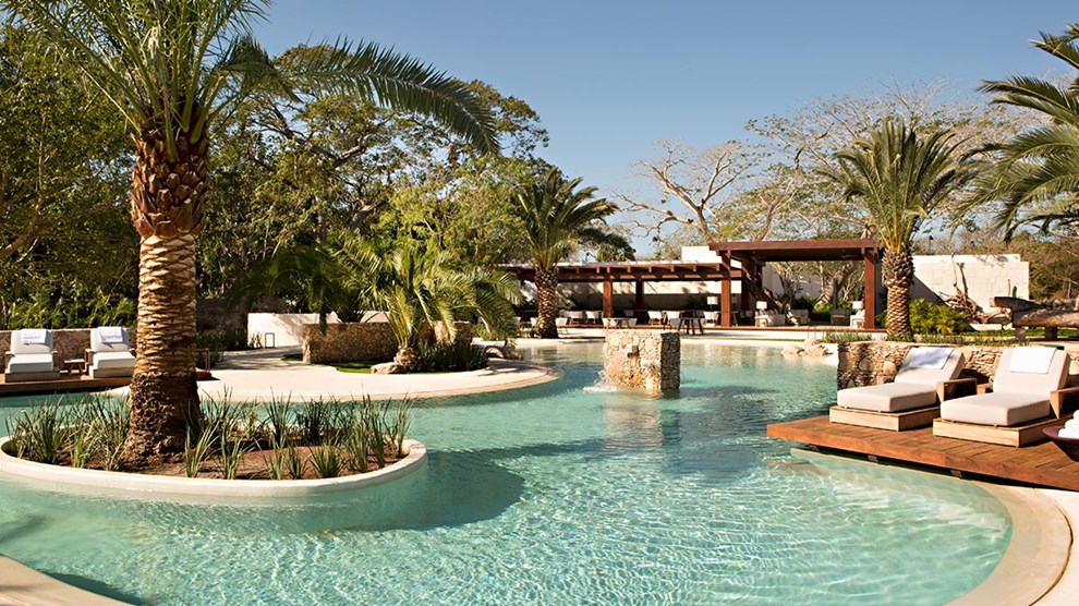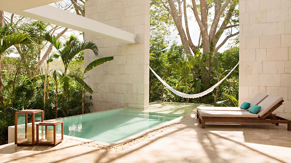 The 38 stand-alone pool casitas are dotted throughout the expansive grounds offering privacy and a peaceful setting, surrounded by tropical gardens. The Presidential Villa is ideal for those who wish to have more privacy, comprising three bedrooms, a pool, private gardens and butler kitchen. Dining options include Grill restaurant Ki’ol, and the signature restaurant, Ixi’im, both of which incorporate ingredients grown within the properties gardens. Plus, there’s a Wellness Restaurant which offers well balanced meals combined with delectable menus. Immerse yourself in the renowned spa, which offers a uniquely customised experience and a range of pampering treatments. Other hotel facilities include a free-form pool, biking and walking trails, paddle and tennis courts, and a cigar bar.